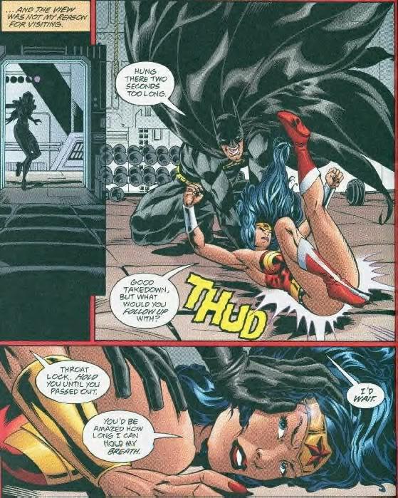 Hold it. Couldn’t she just punch through the Batsuit? Or break his neck?