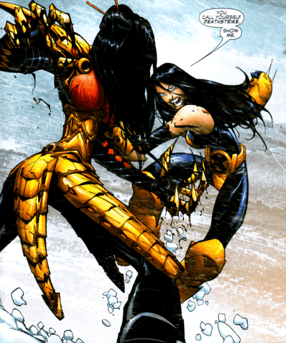 These two are about evenly matched. Lady Deathstrike has fought with Wolverine in the past and knows how to fight. In the end I’d say X 23 is a better fighter. Lady Deathstrike’s never looked like she was that great at hand to hand fighting. With this loss she drops down the ranks. X 23 wins.
