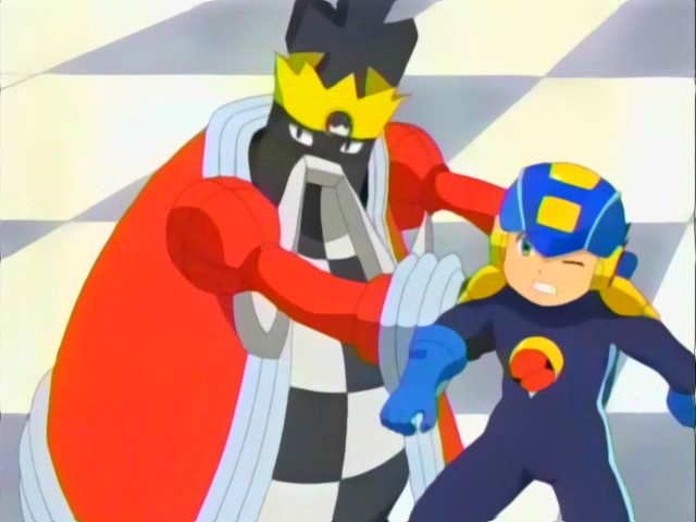 Megaman and Kingman have fought once before. Except they fought in a game of chess. It wasn’t much of a fight. Kingman can fight a bit as seen in the games but he’s nothing to Thundersoul Megaman who would zap him. Megaman wins.