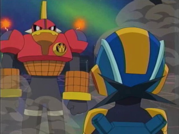 Pink Crusher Militaryman is very weak. He appeared in Axess ep 1. Supposedly Megaman has more power in his finger than he has in his entire body. If that’s true than he doesn’t have a shot against Megaman. Megaman wins.